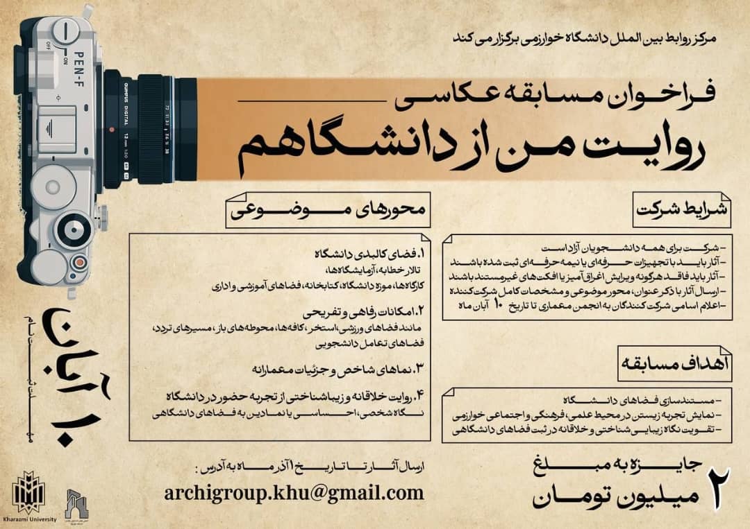 مرکز روابط بینالملل با همکاری انجمن علمی معماری دانشگاه خوارزمی برگزار میکند :